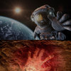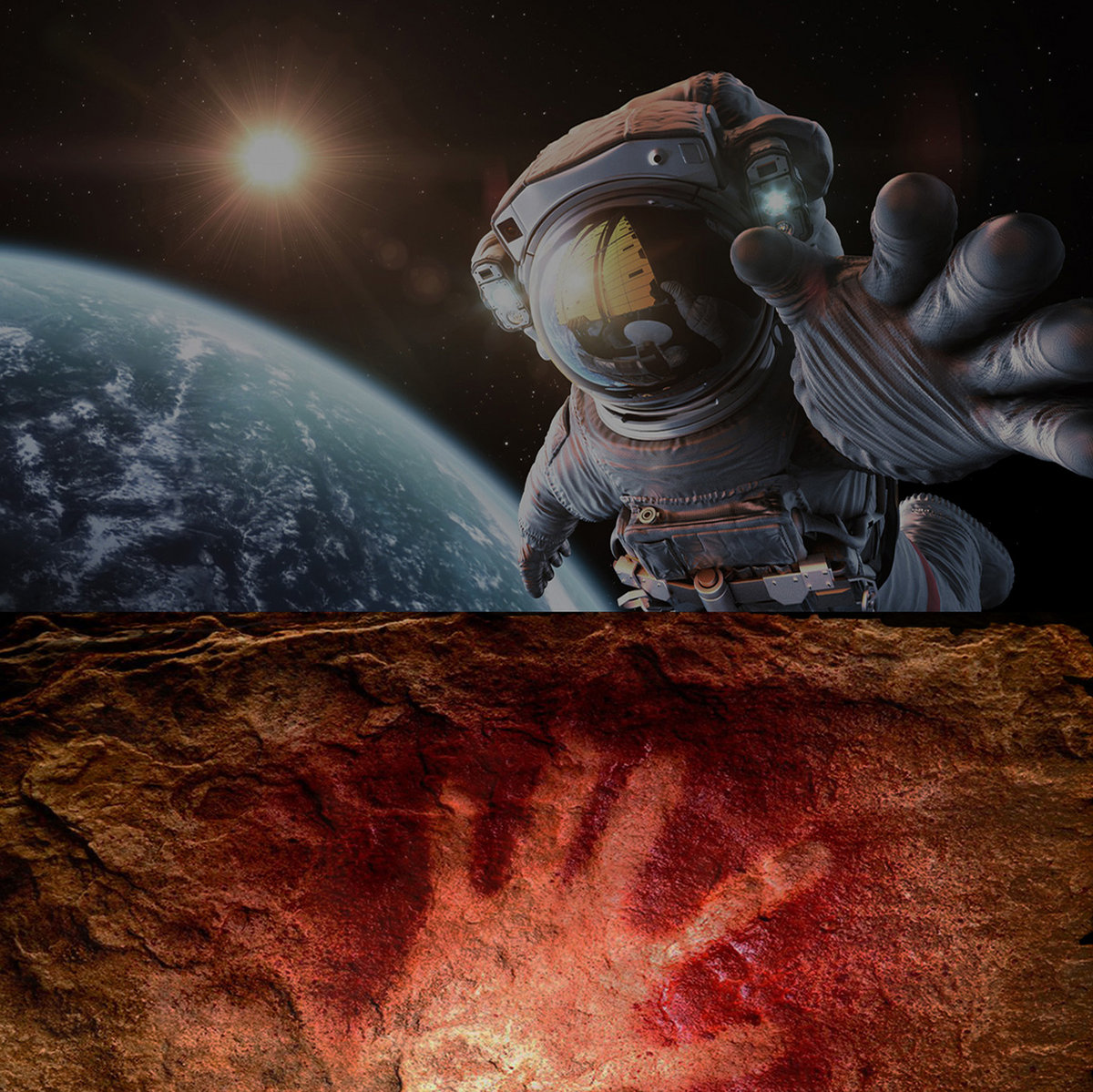 For the final track I wanted to return to the theme of ‘The Comet’ and its role as a silent observer of man’s history. But that is a huge subject to condense into a song, so I decided on two moments that seemed to encapsulate that vast sweep of events; ancient hand paintings discovered in caves dating back 40,000 years and footprints left by astronauts on the moon. The human species is by nature full of curiosity and has developed with amazing pace and ingenuity. As a species we are, as we all know, far from perfect. However sometimes it is appropriate to look at how far we have come even as we accept that we still have far to go and much to learn. The verses move from early man to a silent spacewalk. The chorus imagines the chants and magic of those gathered around the ancient fire and how those primitive feelings of belonging, communication and the need to share our stories is still deep within us.